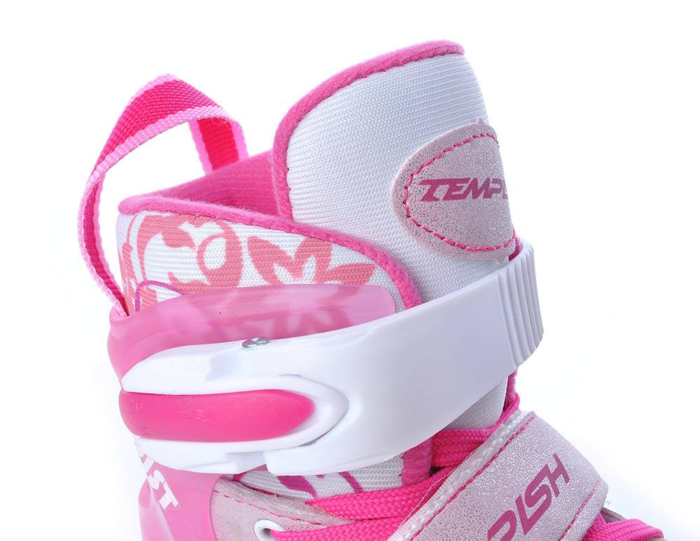 Najmenší kolieskové korčule v kolekcii TEMPISH. Korčule Świst FLASH už začínajú na veľkosti 26!!! Nastaviteľná veľkosť skeletu umožňuje topánke "rast" tak ako rastie chodidlo i užívateľmi - korčuliari/bruslařce! Prestavenie veľkosti je veľmi jednoduché a pohodlné vďaka systému EASY PUSH - zatlačením poistky a jednoduchým prestavením veľkosti topánky. korčuľami možné nastaviť na 4 veľkosti. Golier nad kĺbom (cuff) pevne podrží detskú nohu nad členkom. Dotiahnutie možno regulovať pomocou pracky s poistkou Autolock a ozubeného pásku. Kolieska sú z radu CATCH 64x24 mm, 82A. 2 kolieska na každej korčuli sú opatrené LED diódami. Vhodné pre začiatočníkov aj pokročilých korčuliarov.