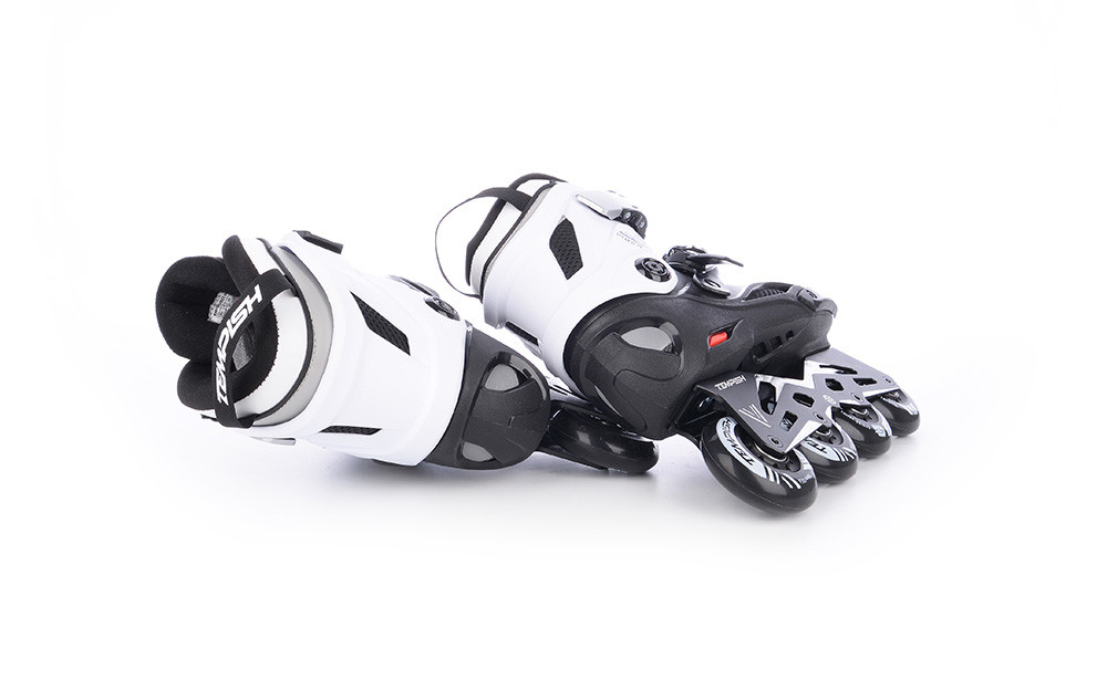 Plastové chrániče na vonkajšej strane korčúľ sú vymeniteľné. Dierky na šnúrky sú osadené pevnostnými kovovými krúžkami pre ochranu šnúrok a lepšiu uťahovanie. Vďaka použitiu voskovaných šnúrok o šírke 10mm je možné ľahšie postupné uťahovanie šnúrok a efektívnejšie uzavretie skeletu korčule k chodidlu.