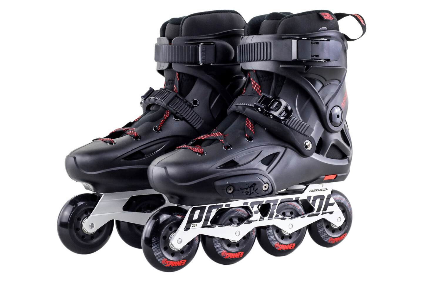 Topánka je posadená na podvozku Alu 6061 Aircraft Rocker s kolieskami Spinner 85A a ložiskami ABEC 5. Vďaka podvozku Rocker, ktorý má strednú kolesá väčší ako krajné, je korčule nesmierne obratná, pocit z jazdy je tak jedinečný.