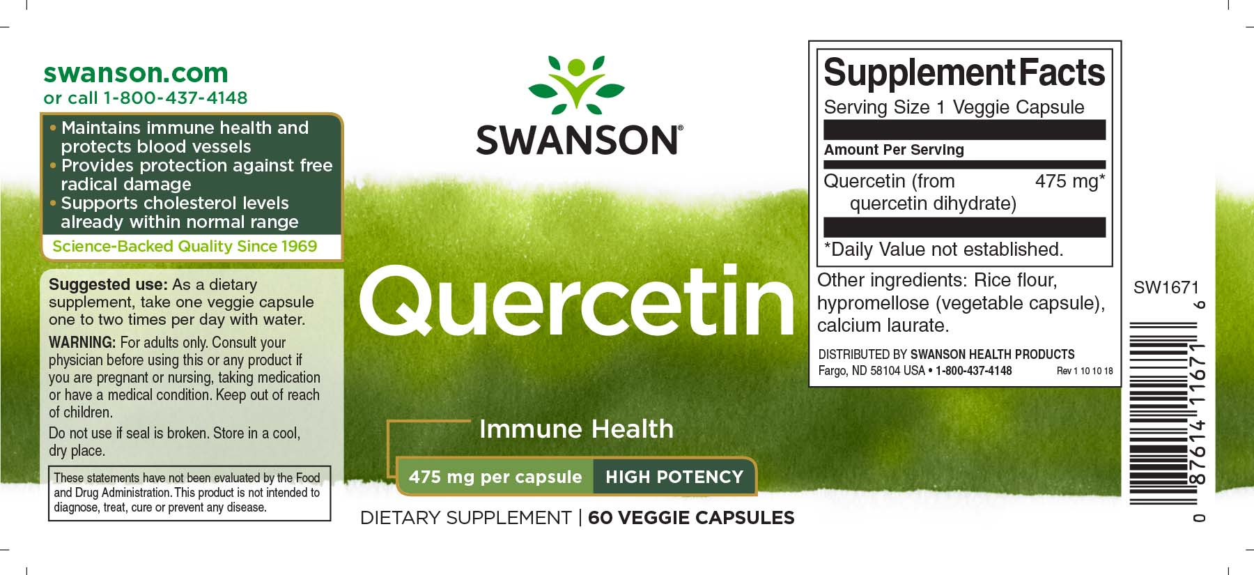Swanson High Potency Quercetin je inovatívny doplnok stravy s obsahom: