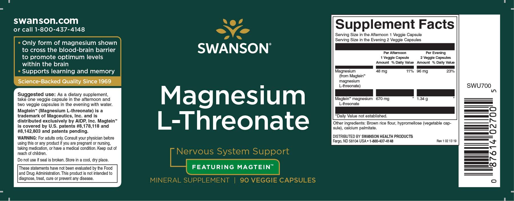 Podporte svoje kognitívne funkcie so Swanson Magnesium L-Threonate obsahujúce: