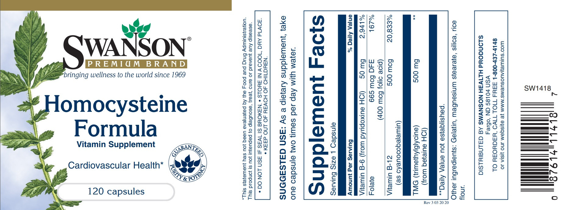 Swanson Homocysteine Formula je inovatívny doplnok stravy s obsahom: