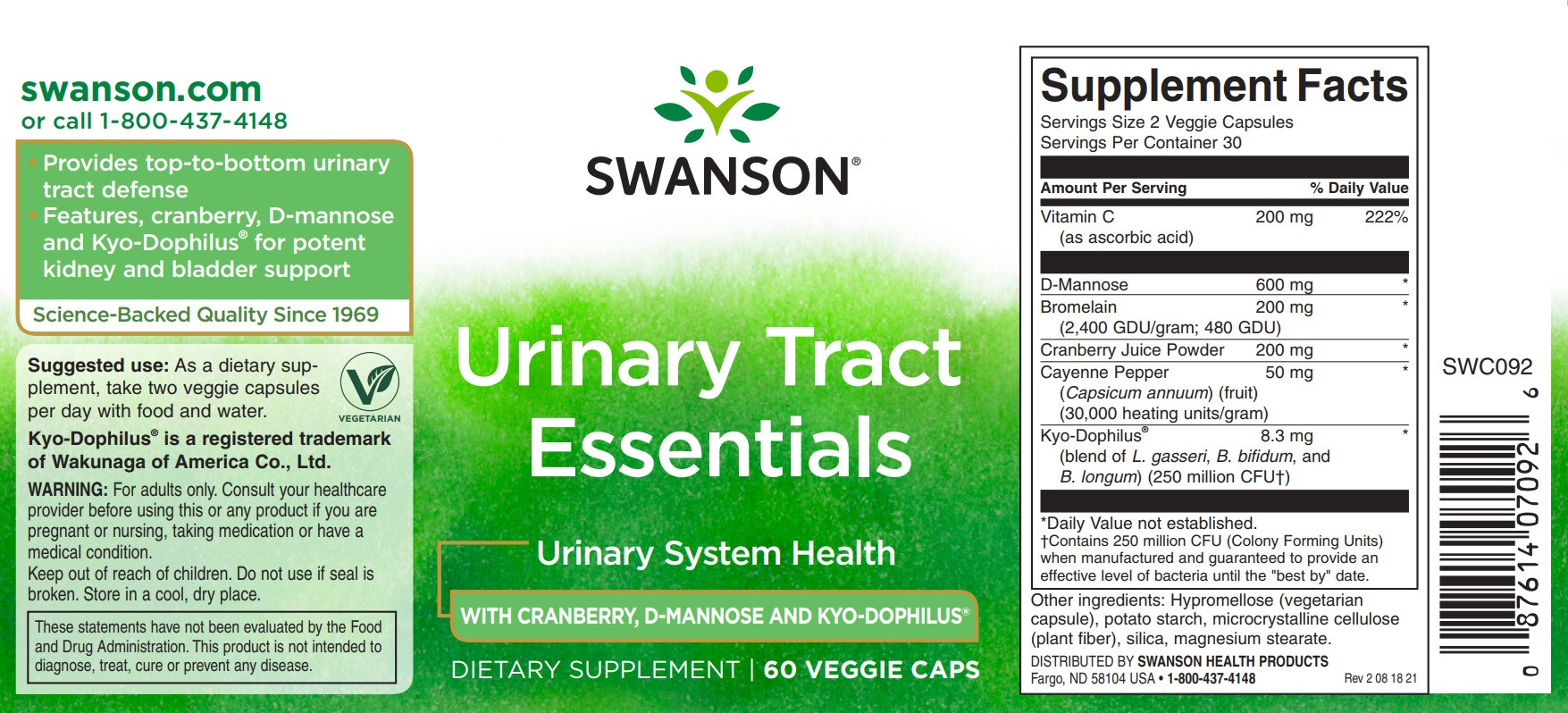 Vitamín C • D-manóza • Bromelaín (2 400 GDU/gram; 480 GDU) • Brusnicová šťava v prášku • Kajenské korenie (40 000 vykurovacích jednotiek) • Kyo-Dophilus® (zmes L. gasseri, B. bifidum a B. longum) • Hypromelóza (rastlinná kapsula) • zemiakový škrob • mikrokryštalická celulóza (rastlinná vláknina) • oxid kremičitý • ryžový extrakt