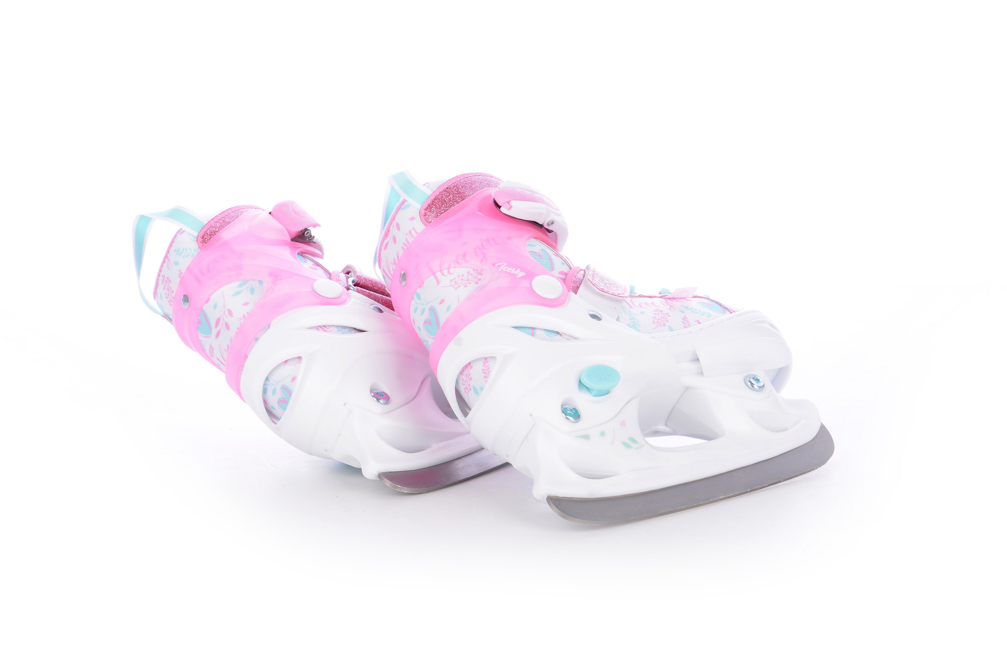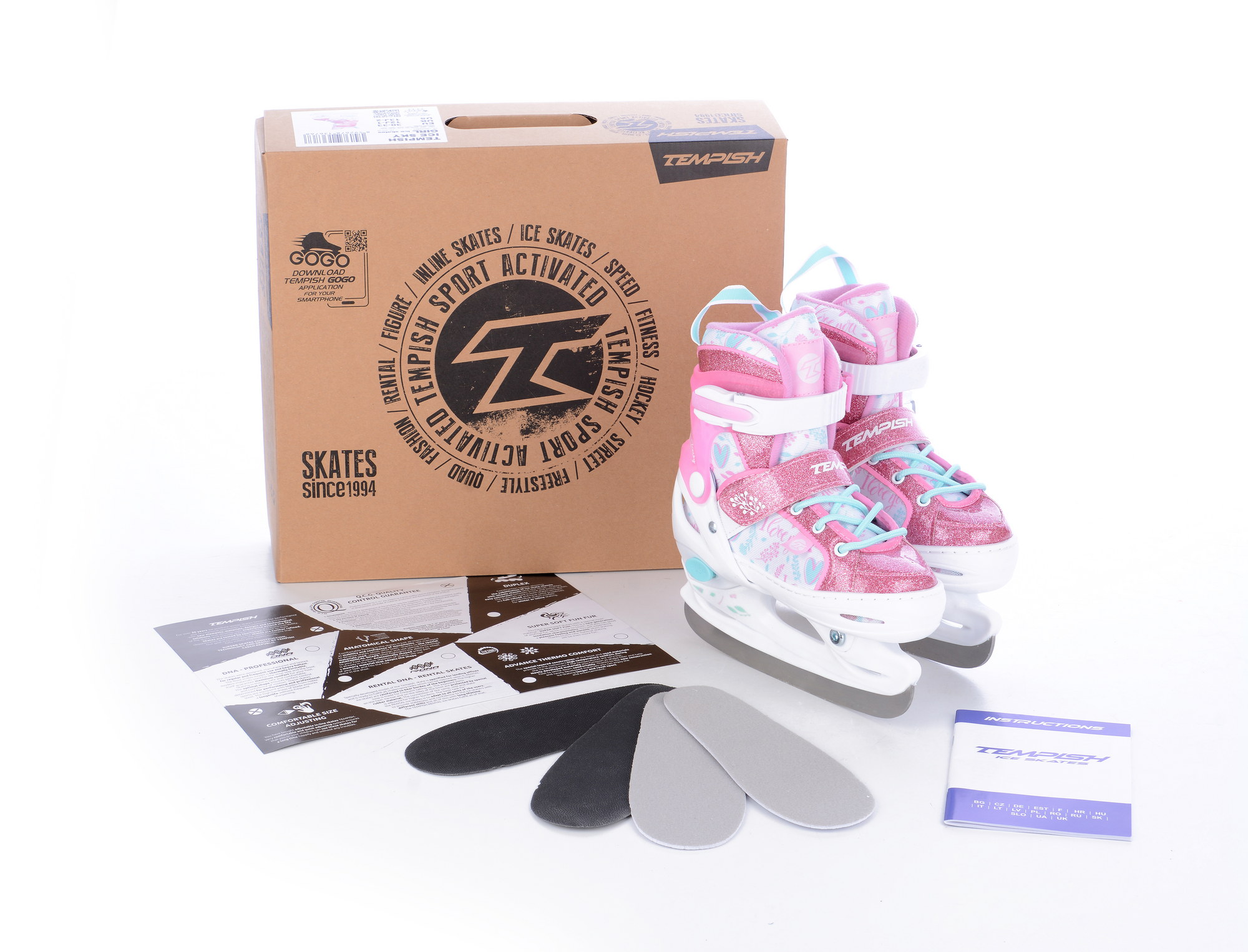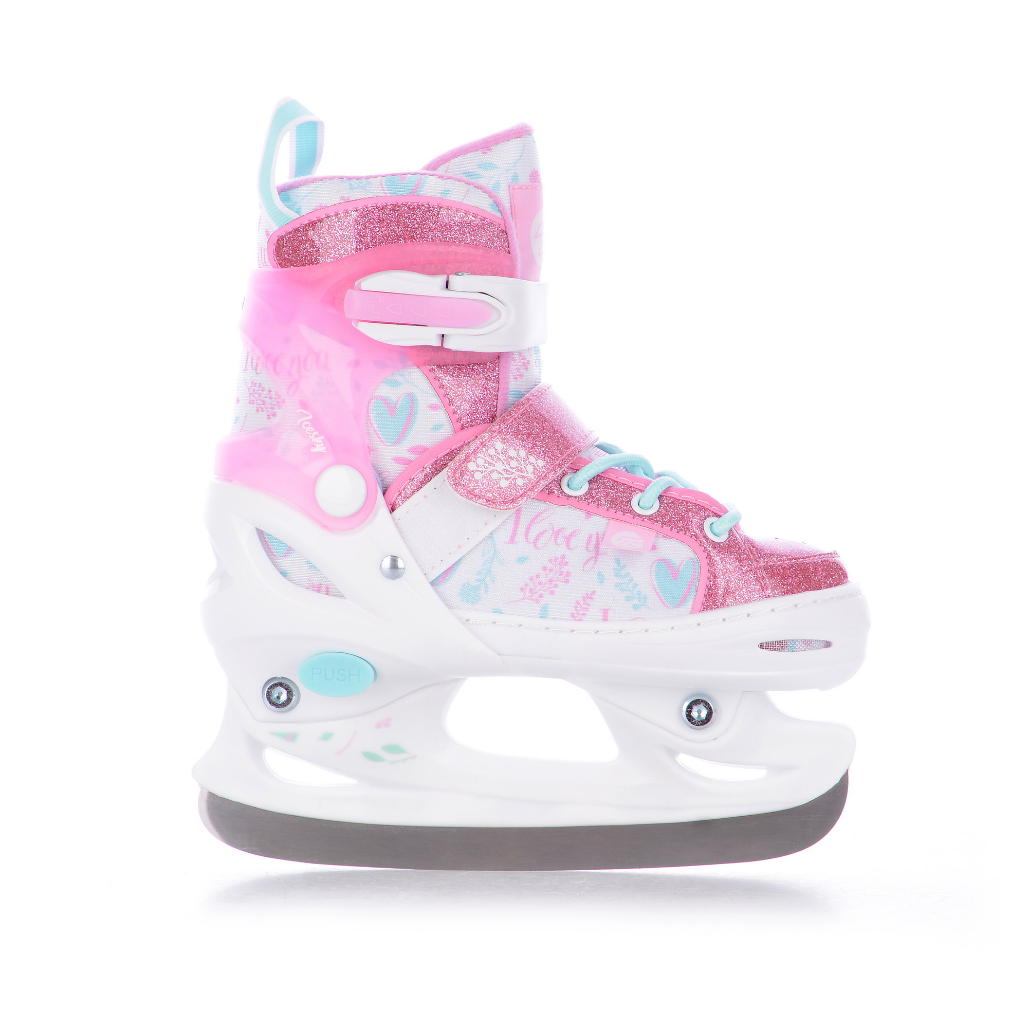 Dievčenské ľadové korčule ICE SKY GIRL s hokejovým nožom sú určené pre rekreačný šport, začínajúcich až pokročilých korčuliarov. Mäkká rýchloschnúca výstelka zaisťuje pohodlie detskej nohy. Efektný polopriehľadný golier je vyrobený z PE, ktorý si zachováva húževnatosť aj pri teplotách okolo -25 °C. Pevné dotiahnutie zaistí šnurovanie, priehlavkový pásik na suchý zips a obojstranná pracka s poistkou proti samovoľnému otvoreniu. Vnútorná bandáž topánočky je veľmi pohodlná a má výborné tepelnoizolačné vlastnosti. Korčule majú jednoduchý a pohodlný systém zväčšenia veľkosti tlačidlom na bočnej strane skeletu. Korčule je možné nastaviť na 4 veľkosti.