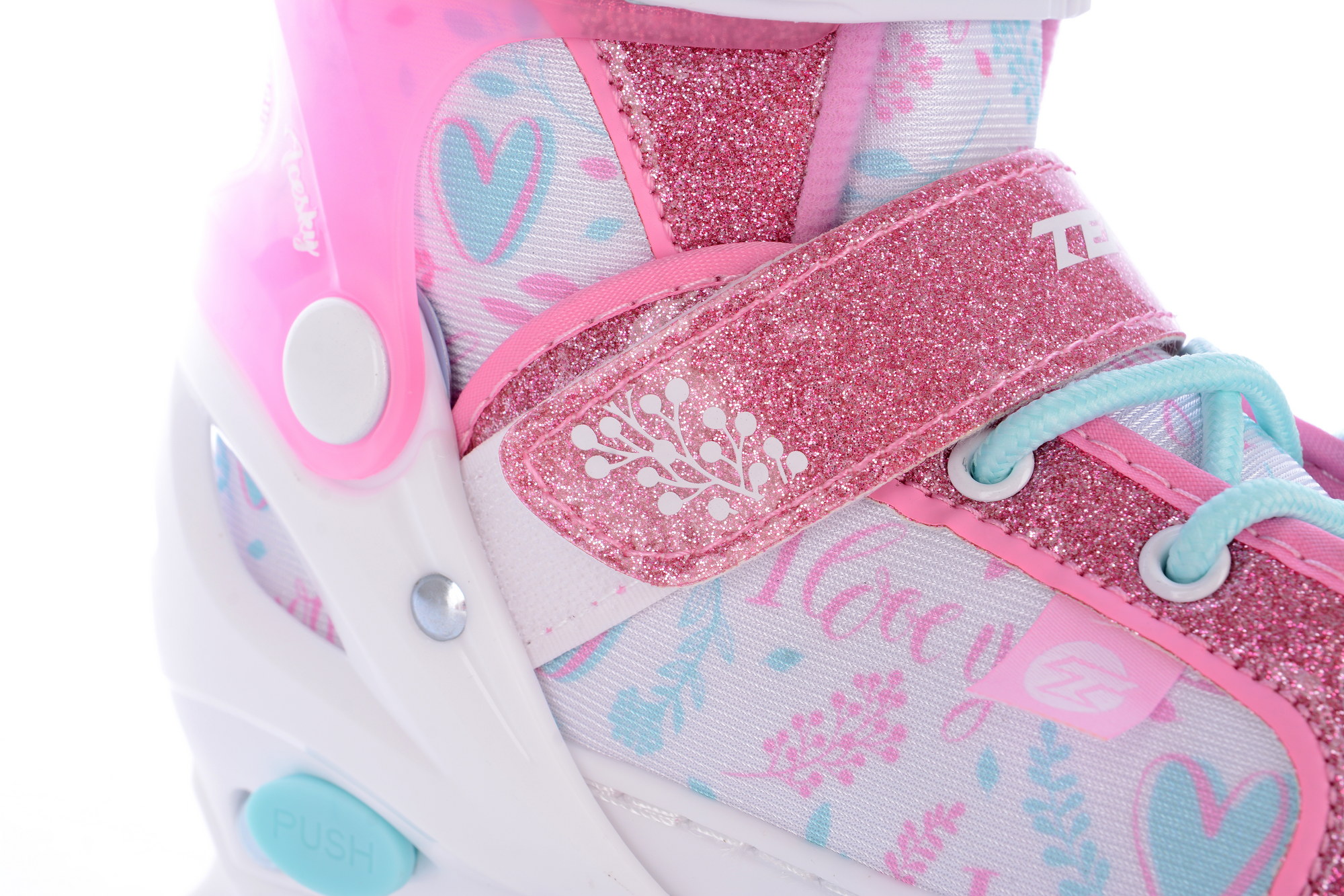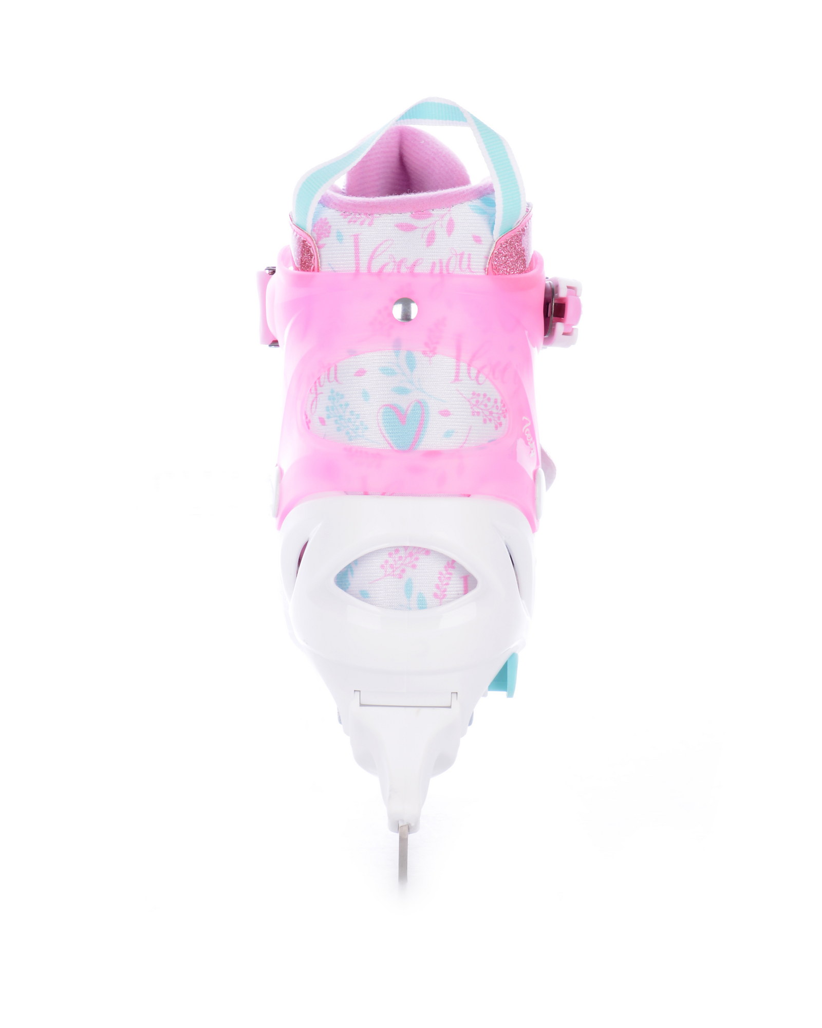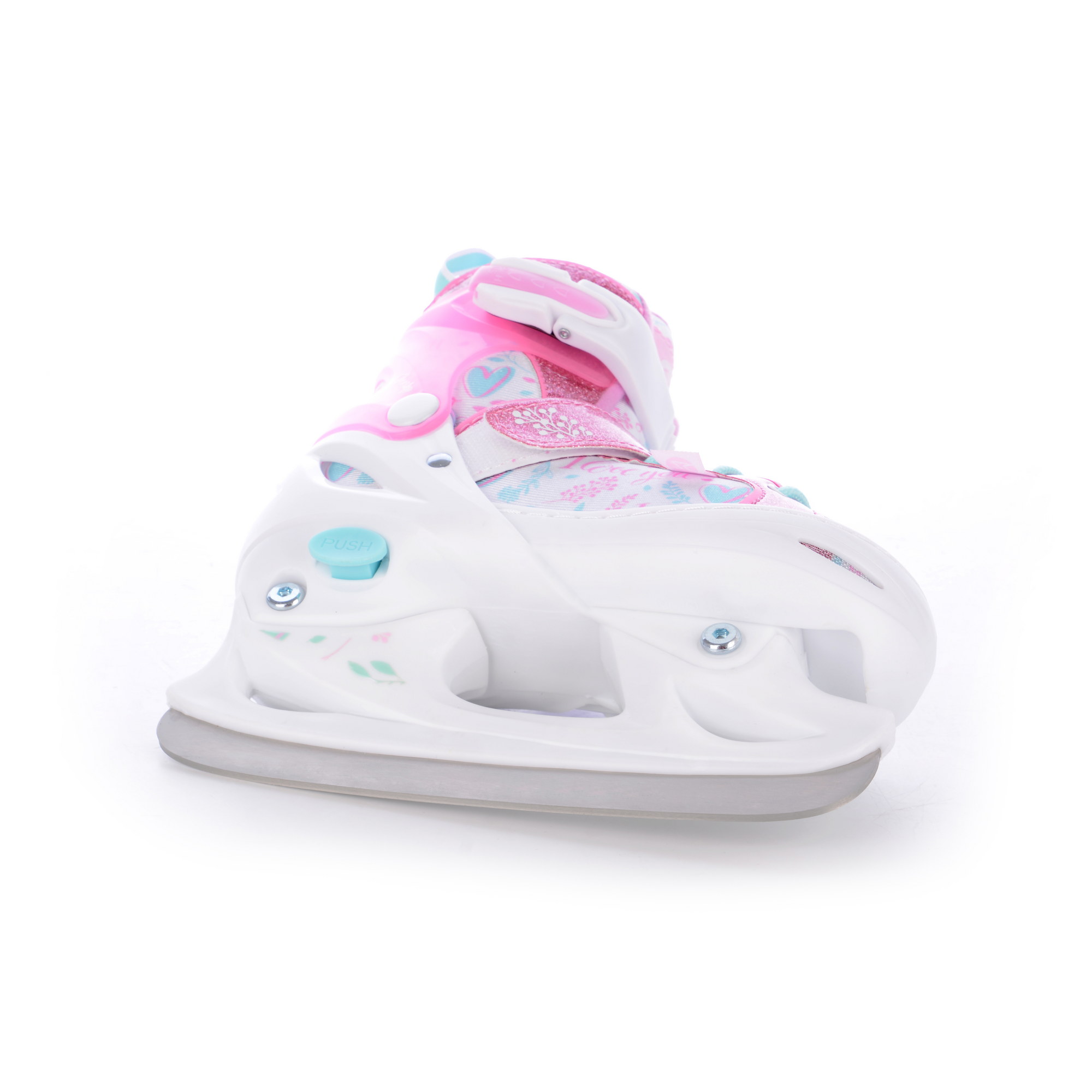 Dievčenské ľadové korčule ICE SKY GIRL s hokejovým nožom sú určené pre rekreačný šport, začínajúcich až pokročilých korčuliarov. Mäkká rýchloschnúca výstelka zaisťuje pohodlie detskej nohy. Efektný polopriehľadný golier je vyrobený z PE, ktorý si zachováva húževnatosť aj pri teplotách okolo -25 °C. Pevné dotiahnutie zaistí šnurovanie, priehlavkový pásik na suchý zips a obojstranná pracka s poistkou proti samovoľnému otvoreniu. Vnútorná bandáž topánočky je veľmi pohodlná a má výborné tepelnoizolačné vlastnosti. Korčule majú jednoduchý a pohodlný systém zväčšenia veľkosti tlačidlom na bočnej strane skeletu. Korčule je možné nastaviť na 4 veľkosti.