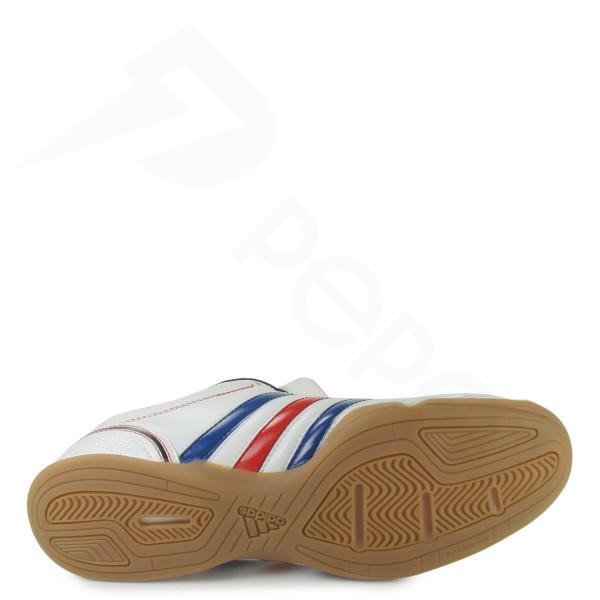 Športy prevádzkované v halách vyžadujú pohyby zo strany na stranu, rovnako ako vpred a vzad. Halové gumové podrážky umožňujú rýchle reakcie, skoky, šprinty aj bočné pohyby. Materiály, z ktorých je tento kúsok vyrobený nezanechávajú na podlahe žiadne stopy. Zároveň zaručujú vynikajúcu trvanlivosť a odolnosť. Skvelý vzhľad je tiež samozrejmosťou. Biela farba je doplnená o modro-červené pruhy na strane, ktoré znázorňujú značku adidas. Neváhajte tento skvelý kúsok proste musíte mať.